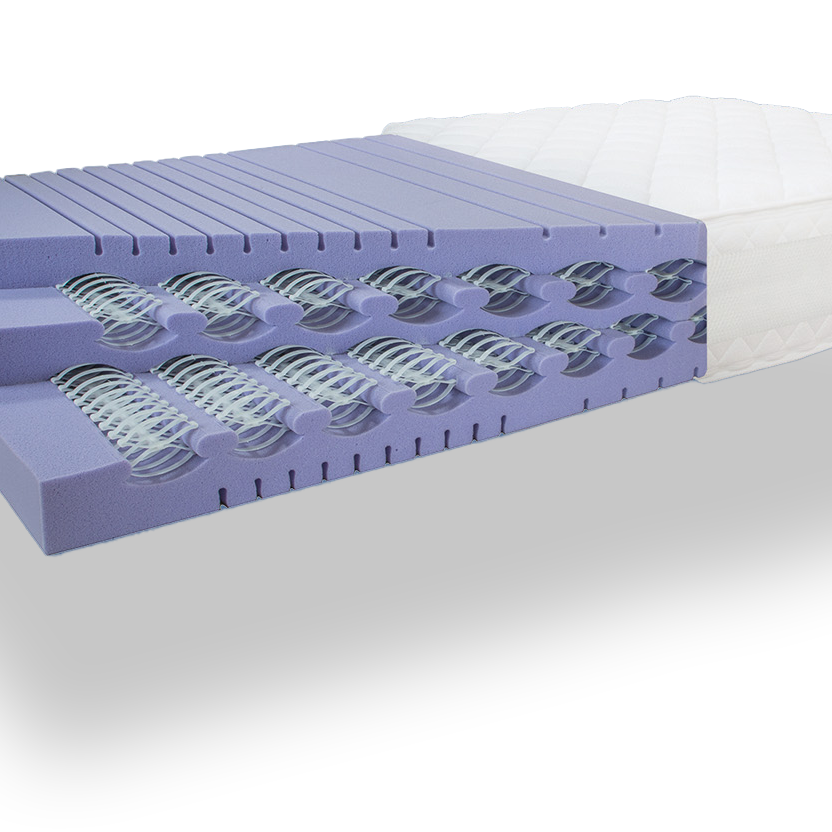 De dikte van uw matras is eveneens afhankelijk van de ruimte, als basis 14 cm tot 22 cm. Aanvullend met extra verensysteem naar eigen wens.